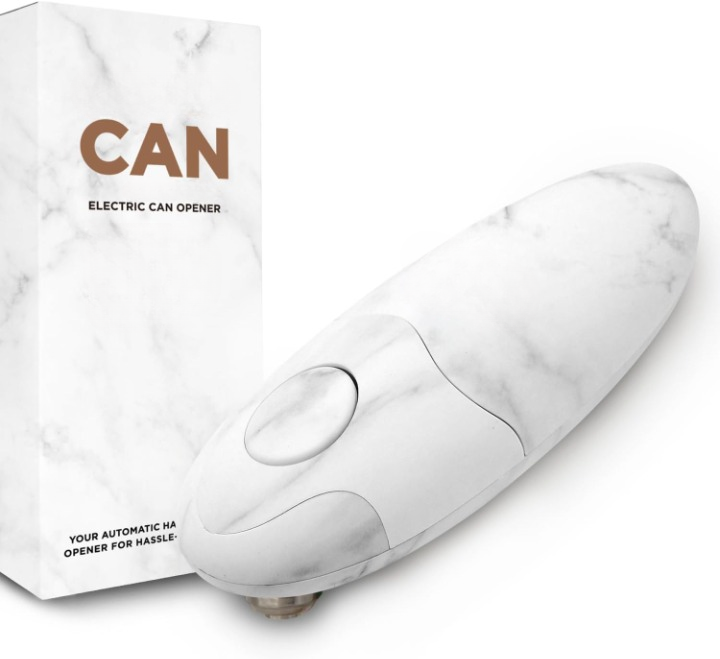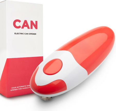 - Easy operation:-Two taps to open any cans with our electric can opener. Push the button to turn it on. It cuts cans 360° along the lid. Push the button again to stop -- EASY!