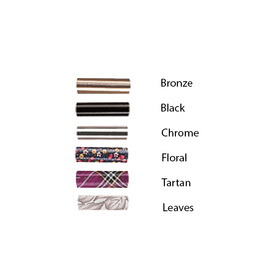 COLOUR:-Bronze, Black, Chrome, Floral, Tartan, Leaves