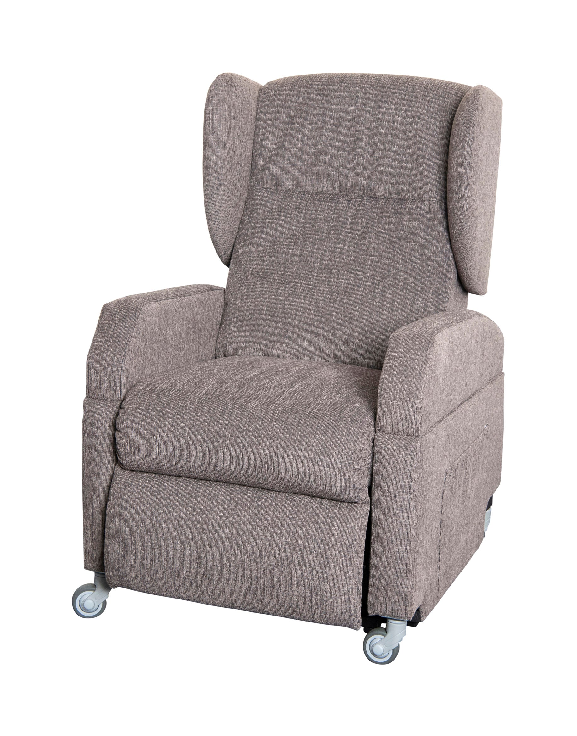 For home and residential facility use the chair is offered in a modern and comfortable chenille cloth upholstery, available in Cherry, Navy Blue or Slate colours as standard options.