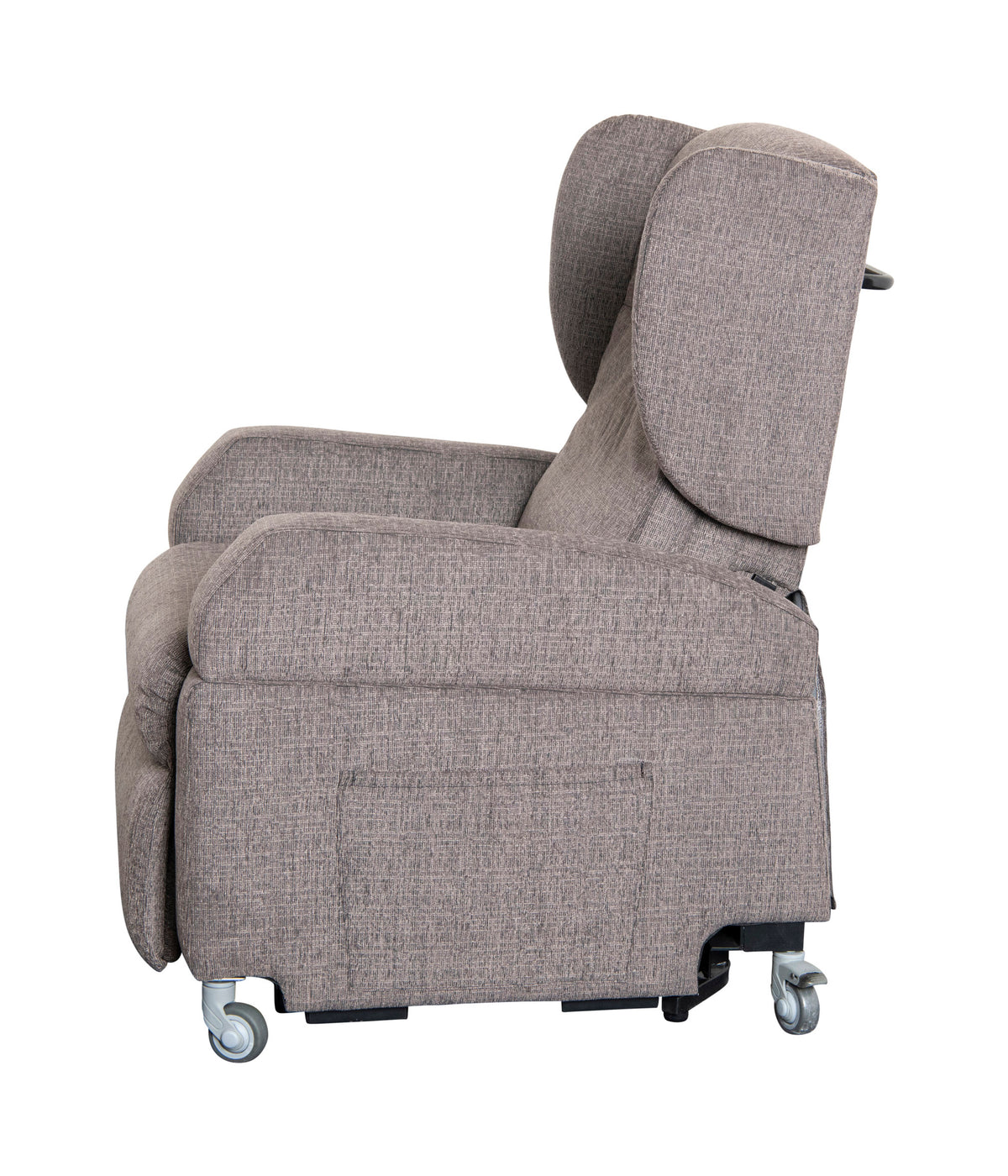 Vertical Lift Chair is a distinct new lift chair on the market. The unique Vertical Lift feature, which raises the seat level by up to 190mm, has a host of benefits for users. This makes transfers in and out of the chair easy, whether it is to a bed, a dining chair or a wheelchair. Arm rests can be removed simply by lifting them out of the position, which then provides a flat surface to side transfer out of the chair.